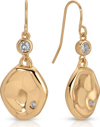 Sparkling stones accentuate the fluid shape of these stunning drop earrings plated in 18-karat gold.