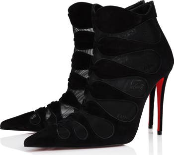 For his spring '26 collection, the designer takes inspiration from the captivating worlds of the circus and the performing arts to create this low-cut mesh bootie overlaid with curvaceous suede accents. Christian Louboutin's iconic red sole secures the style's place as a paragon of modern glamour.