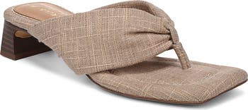 Punctuate your look with the easy retro charm of a block-heel sandal topped with artfully gathered straps.