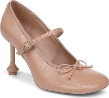 [This review was collected as part of a promotion.] The Vivian ballet pumps are so cute! I love that they are reminiscent of a ballet slipper. The unique heel is a great touch! I would love to see these in more colors, pink or lilac would be adorable. They fit true to size and are very comfortable for a pump. The heel height is not too tall so they are not difficult to walk in.