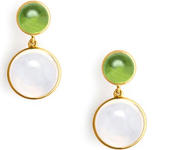 Fresh and luminous, the Cirra Double Drop Earrings feature cabochon blue topaz paired with glowing moon quartz, set in 18k yellow gold. The gentle movement between the two stones creates a light, fluid presence. Bright yet refined, they bring ease and clarity to everyday dressing.