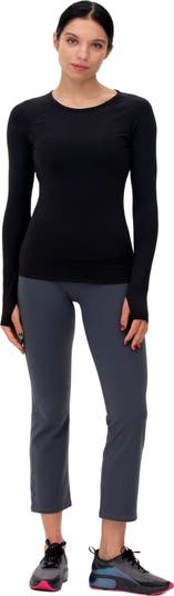 An essential compression long sleeve made for all types of activities from gym, yoga, and hikes. Features thumboles and raglan sleeves. Light compression for breathability and added stretch for mobility, this fabric wicks sweat and is cool to touch.