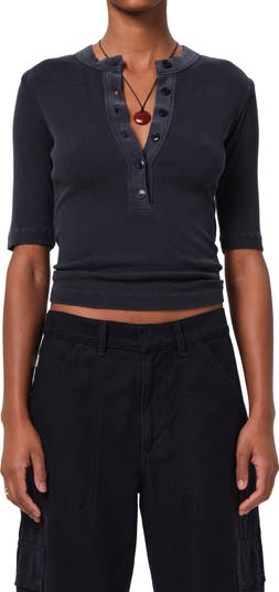 Cut from an organic-cotton blend that's ultrasoft, this svelte henley is a favorite for casual looks.