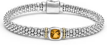 A faceted citrine stone takes center stage in an elegant rope bracelet made from signature sterling silver Caviar beading with luminous 18-karat-gold accents.