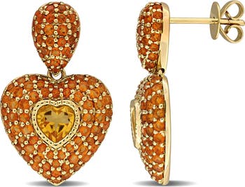 Indulge in luxury with our Citrine Cluster Heart Drop Dangle Earrings in 14k Yellow Gold. These earrings feature stunning heart-cut citrine paired with madeira citrine accents, exuding a timeless elegance. Crafted in 14k yellow gold, they offer a luxurious and sophisticated look suitable for any occasion. Whether you're attending a special event or adding a touch of glamour to your everyday attire, these earrings are sure to make a statement and dazzle with their radiant beauty.