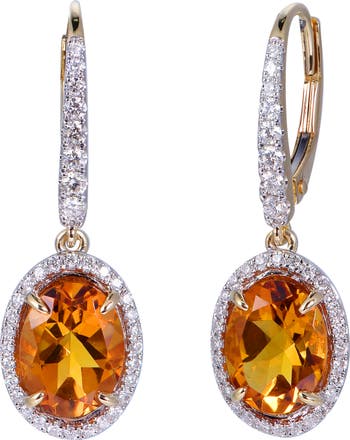 3.21ct Citrine Oval Cut Earrings in 14K Yellow gold with natural diamonds