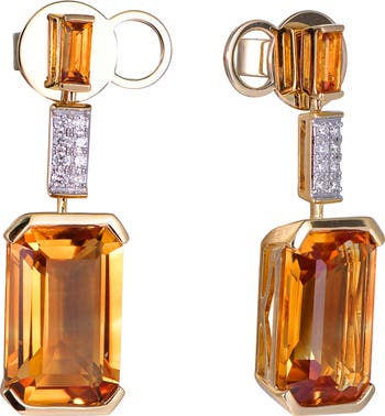10.58ct Citrine Octagon Cut Earrings in 14K Yellow gold with natural diamonds