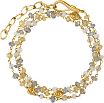 Citrine Labradorite Moonstone Gold Plated Wrap Bracelet Divine Happiness