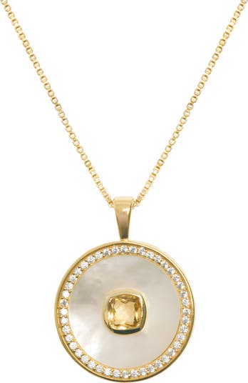 Warm citrine sits at the centre of our Citrine Mother of Pearl Birthstone Necklace, set into iridescent Mother of Pearl and bordered with dainty White Zircon gemstones. Crafted in 18ct Gold vermeil over Sterling Silver, this November birthstone symbolises optimism and success. A personal keepsake designed to be worn and loved every day.