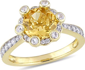 Citrine White Sapphire & Diamond Halo Ring 14k