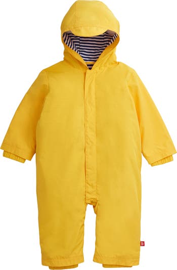 Rainy weather won't slow your puddle-stomper down thanks to this water-resistant hooded jumpsuit in a vibrant yellow hue that brings a pop of sunshine to the greyest days. It also features the label's signature magnetic closure that lets you easily get it on/off your little one.