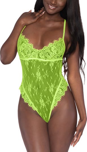 Strappy and sheer, this standout teddy is made of delicate lace with frilly eyelash edges and has a strappy back.