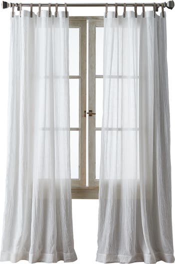 Faux-leather tabs bring a subtle touch of cool, modern edge to these semisheer curtain panels that help transform soft light in any space of your home.