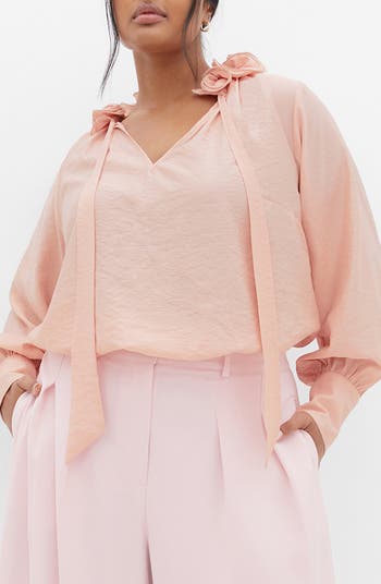 Ruffles masquerade as rosettes circling the collar of this silky top cut for an easy, swingy fit that's perfectly complemented by the full sleeves.