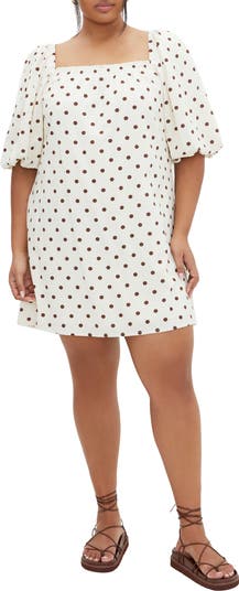 Allover dots enliven this charming dress designed with abbreviated puff sleeves and a flirty tie back.