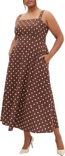Polka dots pattern this breezy, linen-kissed sundress made with a smocked back panel that offers a comfortable fit.