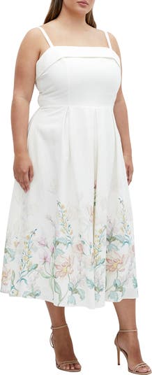 With a dainty floral pattern along the hem, this linen-blend sundress is the epitome of warm-weather sophistication.