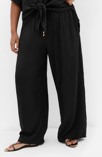 A casual and comfy drawstring waist tops these flowy wide-leg pants made of a lightweight woven fabric that complements your weekend style.
