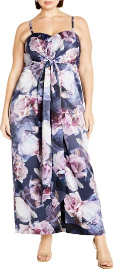 Oversized blooms romance this sleeveless maxi designed with a shaping front tie and a leg-baring front slit.