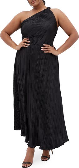 Light up the night in this shimmering metallic maxi designed in a richly textured fabrication and cut in a sleek shoulder-baring silhouette.
