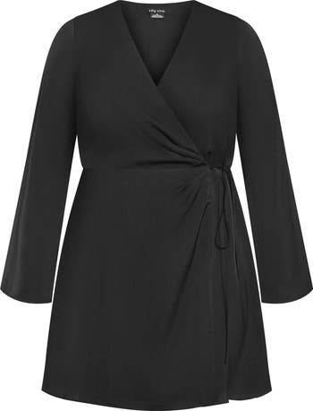 A fabulous wrap silhouette highlights your curves in this long-sleeve dress that's the perfect look for your next date night.