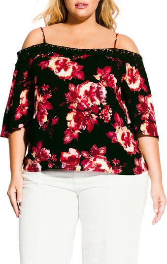 Rock your music festival outfit of the day in a cold-shoulder top covered in a bounty of blooms.