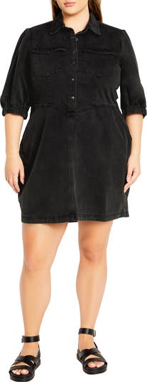 Snaps make it easy to get into this nonstretch-denim minidress featuring functional pockets to keep your essentials secure.