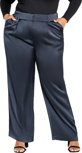 Rich and silky satin inform the look of polished wide-leg pants that have a touch of stretch and functional pockets for added comfort.
