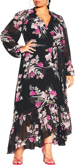 A garden of dreamy flowers blooms across this boho-chic maxi cut from lightweight chiffon and trimmed with a swishy ruffled hem.