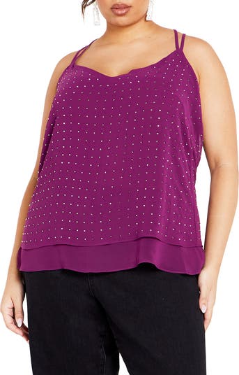 Sparkly studs elevate this strappy racerback tank punctuated with a layered hem.