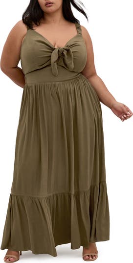 Add an extra dash of magic to a day date or romantic dinner with this stunning maxi dress in a timeless fit-and-flare silhouette, featuring ties at the V-neck and a tiered skirt.