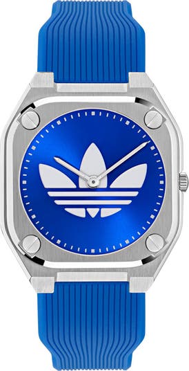 Strap/closure: Silicone strap with adjustable buckle closure.