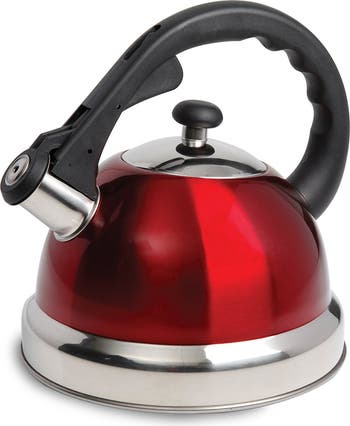 The Claredale 2.2 qt. Whistling Tea Kettle will help you get your favorite hot beverages ready effortlessly. This dome shape tea kettle is made of high quality and durable stainless steel to resist rust and stains for a long lasting sheen. The ergonomic stay-cool handle features a flip-up spout cover engaged by a trigger button for a safe and easy one-handed operation, without worrying about burning or scalding yourself. For added convenience, the Claredale kettle will whistle to let you know that your water is ready!