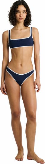 Part of our safari-inspired summer collection, the Claire swim top has been updated with a laminate tortoise ring at the shoulder. The darted cups have optional padding to enhance the form, and the straps and back closure are both adjustable, allowing you to customize the fit.