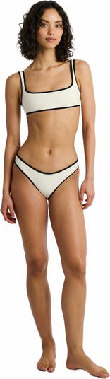 - Part of our safari-inspired summer collection, the Claire swim top has been updated with a laminate tortoise ring at the shoulder. The darted cups have optional padding to enhance the form, and the straps and back closure are both adjustable, allowing you to customize the fit.