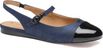 A laser-etched sole adds extra traction to every step you take in this classic mary jane slingback flat that a features a cushiony TRUFOAM® footbed for all-day comfort under foot.