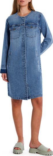 A workshirt-inspired denim dress delivers all the good vibes you expect—from its softly faded wash to its boxy fit.