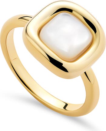 Accessorize in modern, elegant style with this 14-karat gold-plated ring set with shimmering mother-of-pearl.