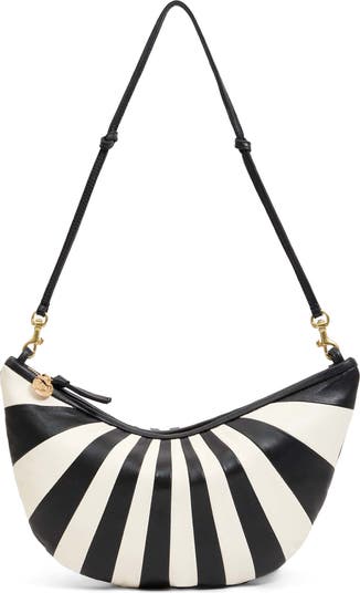 A slouchy design and half-moon profile bring fluidity to a spacious shoulder bag suspended from an optional strap that converts for shoulder or crossbody wear.