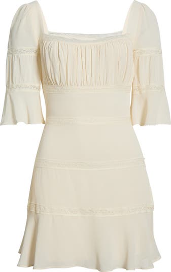 Feel artsy and poetic in this breathable minidress made with sweet lace insets and fluttery sleeves.
