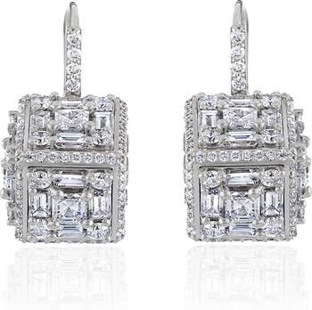 Icy-bright cubes of round-, Asscher- and baguette-cut diamonds bring intense shine to these lever-back earrings cast in 18-karat gold.