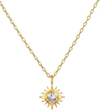 Let the stars in the night sky guide your journey; let their eternal light be a beacon of clarity as you manifest your dreams into existence. A gleaming necklace of 18kt gold plate is graced with a brilliant starburst, symbol of dreams, guidance, and inspiration. In the center of the starburst, a white topaz shines brilliantly, lending clarity and strengthening your powers of manifestation. Wear this necklace to enhance intuition, and as a symbol of powerful intention.