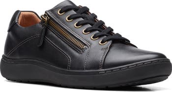 An easy-access side zip and tonal stitching adds modern touches to a sporty leather sneaker cushioned with a contoured footbed and breathable lining.