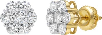 Classic 14K Yellow Gold Diamond Cluster Earrings - 2.03ct.