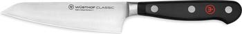 This utility knife eatures a uniquely curved straight edge blade, which allows it to be used as both a mini chef's knife and as a paring knife. The knife is perfectly designed for both low rock cuts that require moderate heft and precise balance, and closer hand work that demands a razor-sharp edge and exceptional agility. The ideal size and shape for countless food prep tasks, the Asian Utility Knife performs effortlessly when cutting, slicing, or dicing a variety of ingredients, including small- and medium-sized fruits, vegetables, and cheeses. It can also be used to trim meats and poultry.