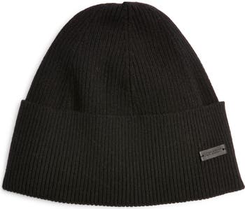 Bundling up feels ultraluxe in this soft Italian-cashmere beanie with an ear-warming cuff bearing an engraved logo plaque.