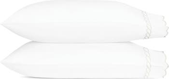 A signature chain motif inspired by the brand's archives complements the timeless scalloped edges of these pillowcases that add a layer of luxury to your bedding ensemble in cool, crisp cotton percale.