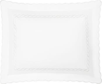 A signature chain motif inspired by the brand's archives complements the timeless scalloped edges of this pillow sham that adds a layer of luxury to your bedding ensemble in cool, crisp cotton percale.