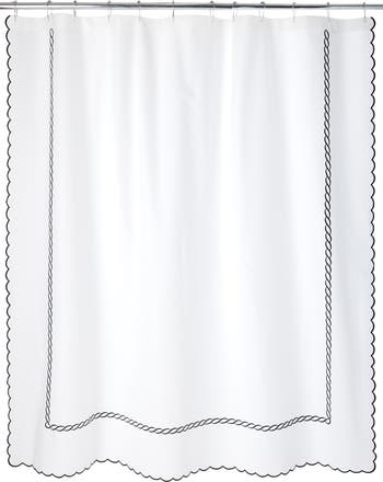 Put a Grecian-inspired twist on your bathroom decor with this fresh cotton shower curtain embroidered with sweetly scalloped edges.