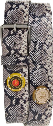 Classic Champagne Cap Snakeskin Embossed Leather Belt
